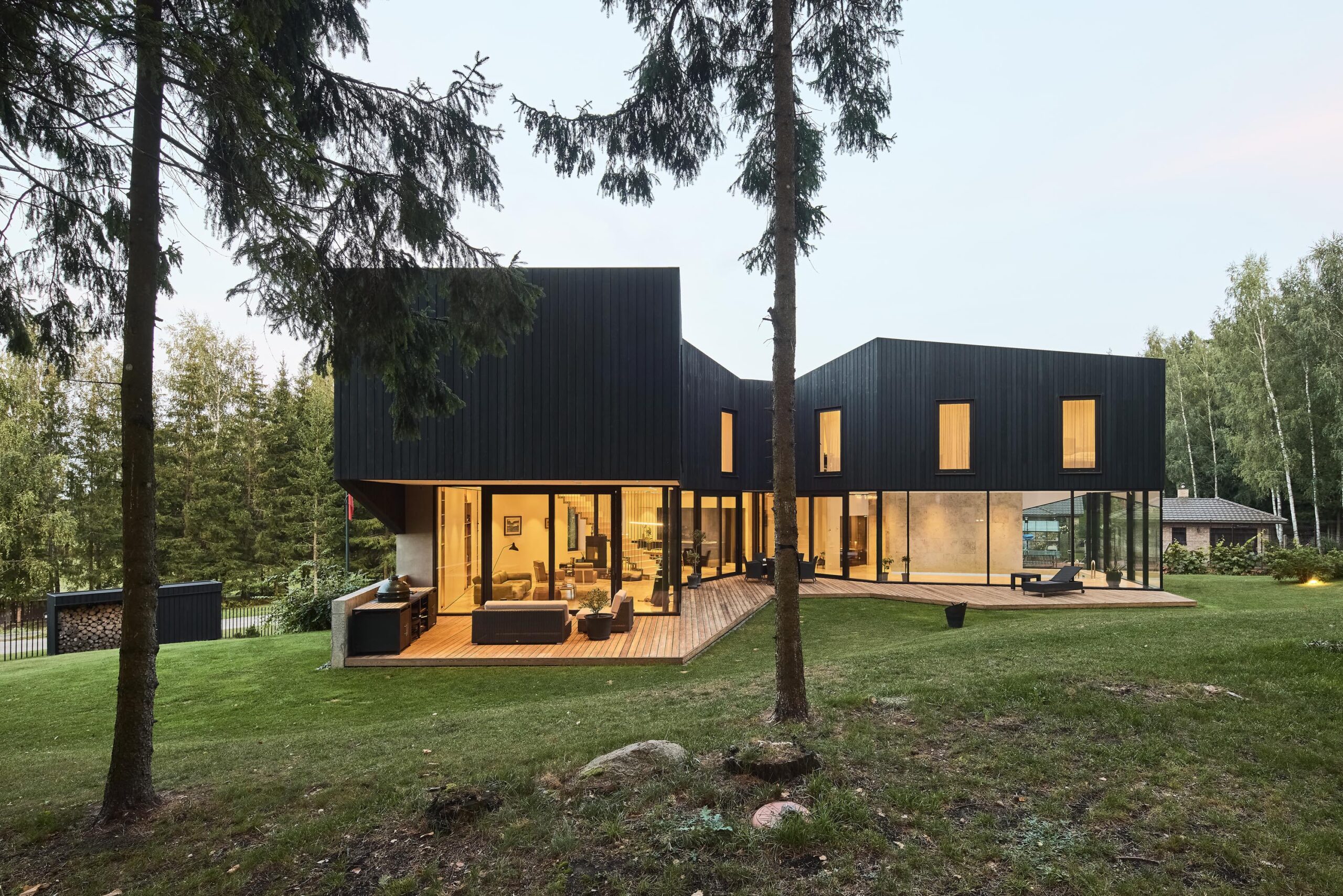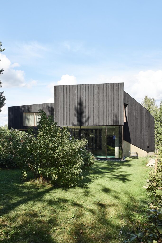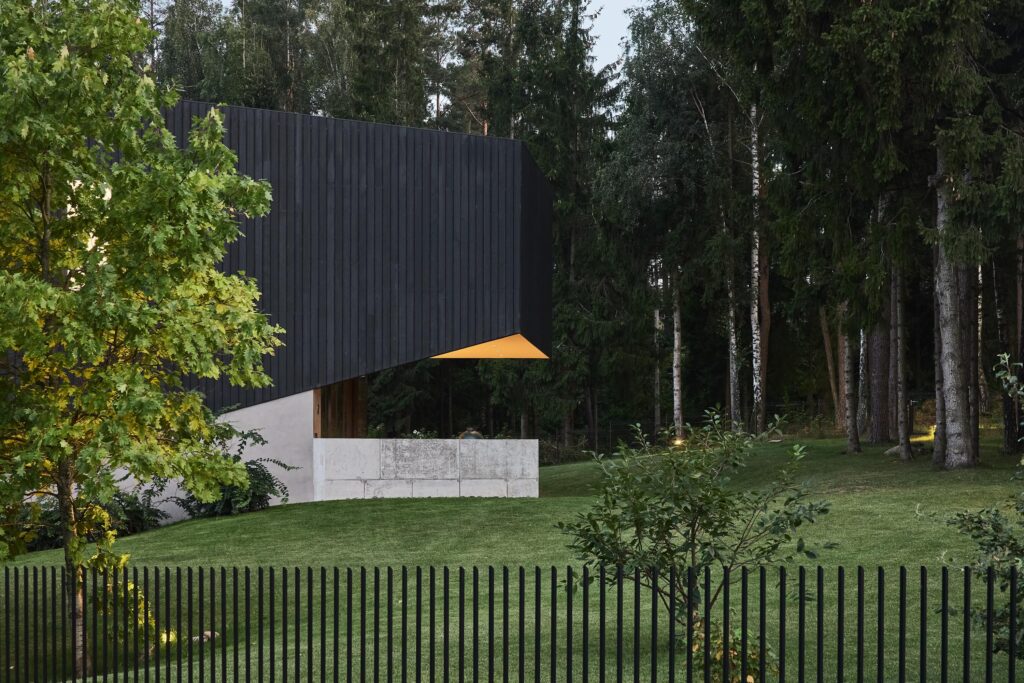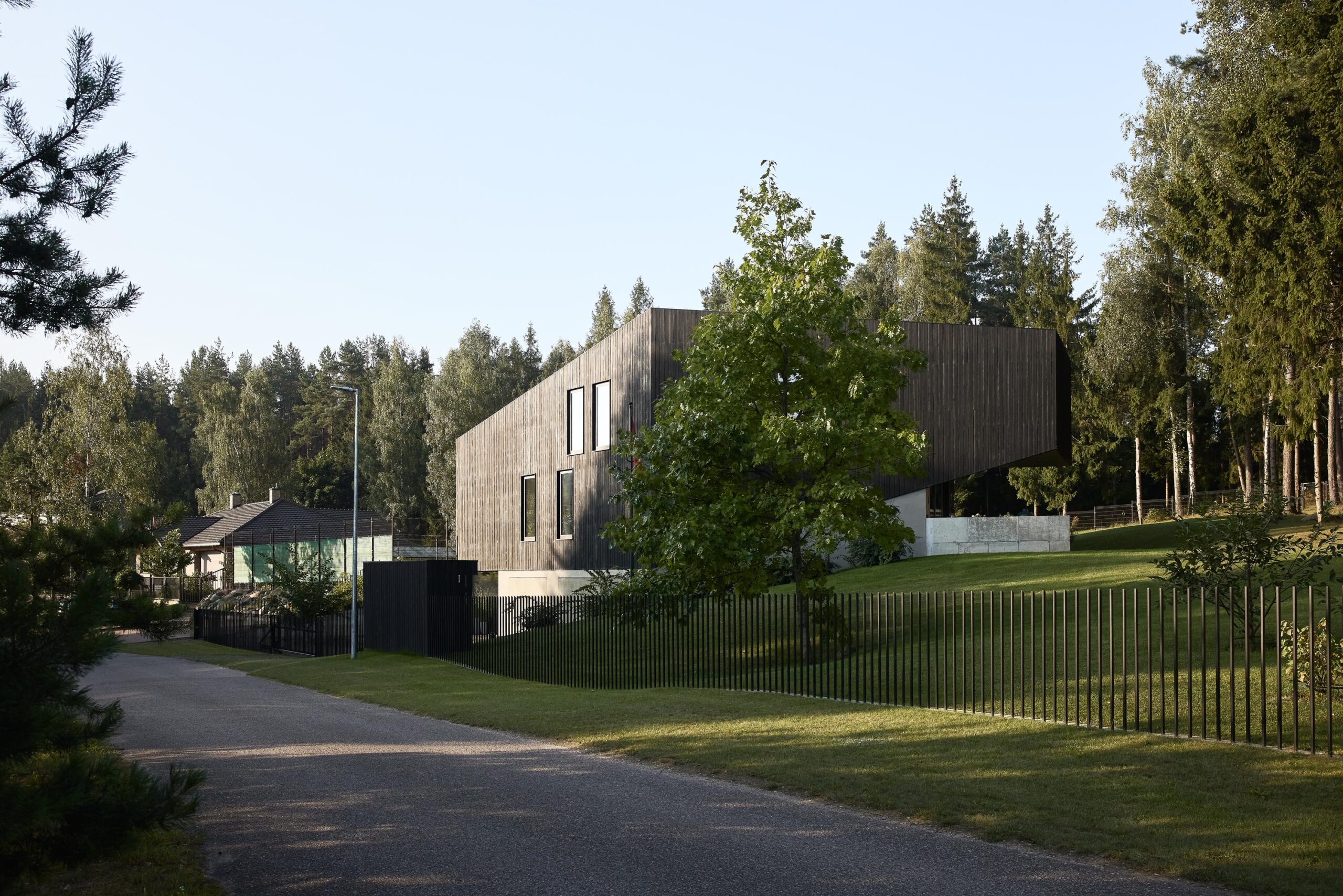 Kontekstualumo, integralumo ir naujų raiškų paieškos, naudojant tradicines medžiagas. Vientisa deginto medžio apdaila pabrėžia tūrio skulptūriškumą, kontrastuoja ir pabrėžia interjero šviesumą. Tai lyg miško paunksmės ir saulėtos proskynos aliuzijos.
