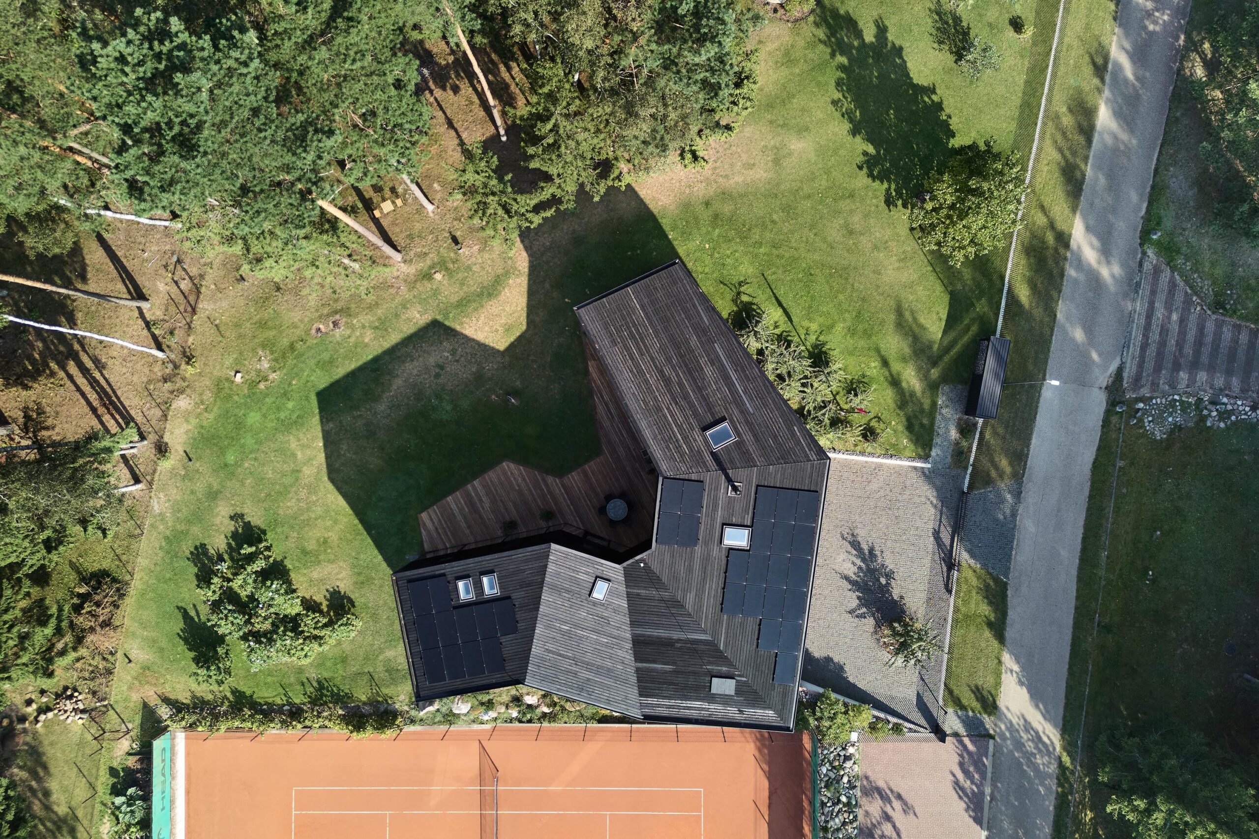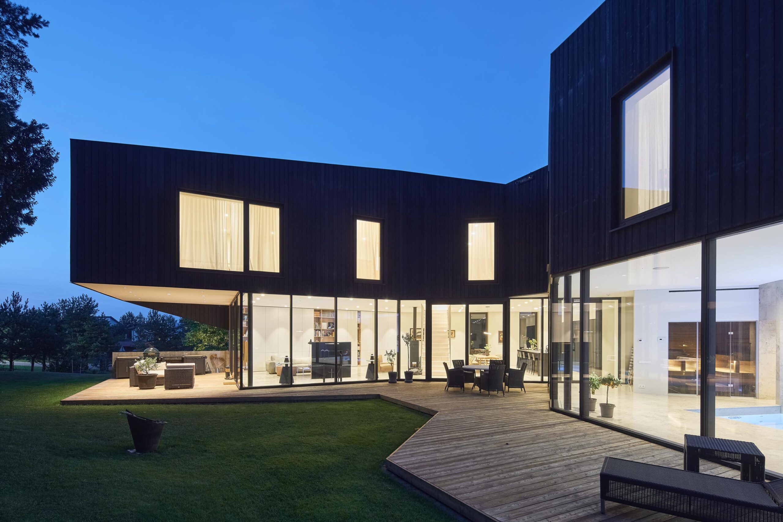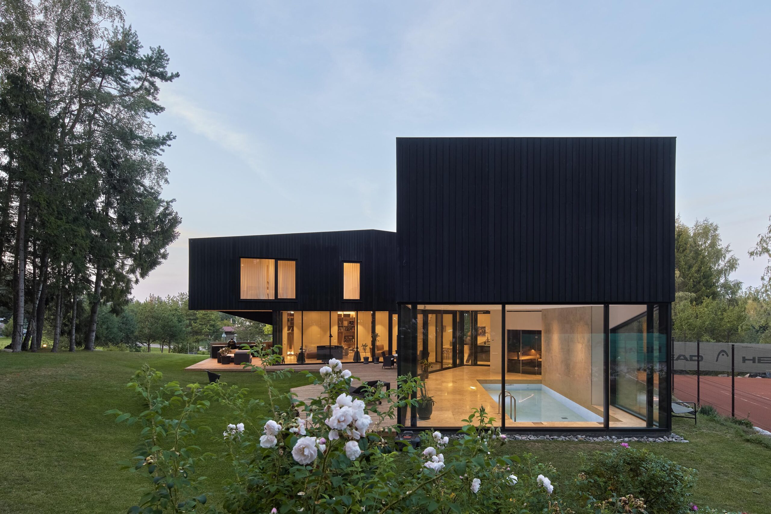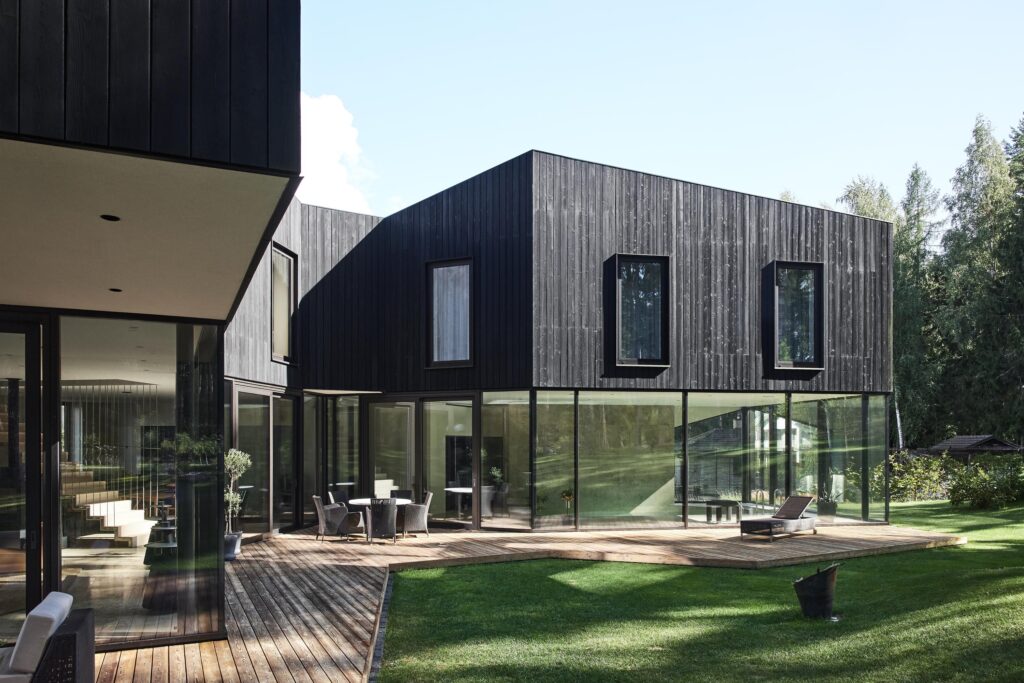 Kontekstualumo, integralumo ir naujų raiškų paieškos, naudojant tradicines medžiagas. Vientisa deginto medžio apdaila pabrėžia tūrio skulptūriškumą, kontrastuoja ir pabrėžia interjero šviesumą. Tai lyg miško paunksmės ir saulėtos proskynos aliuzijos.